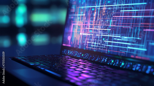 Wall mural artistry in coding with a close-up of a beautifully structured code on the computer screen