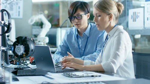 The watermark will not be included on Wall mural.: Asian scientist sitting at his desk consults senior engineer about sophisticated coding and programm