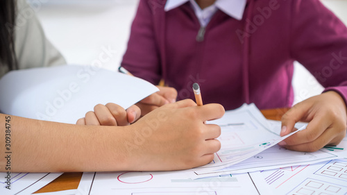 The watermark will not be included on Wall mural.: Asian startup designer creating user experience ux web on smartphone or mobile layout development - u