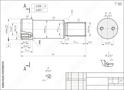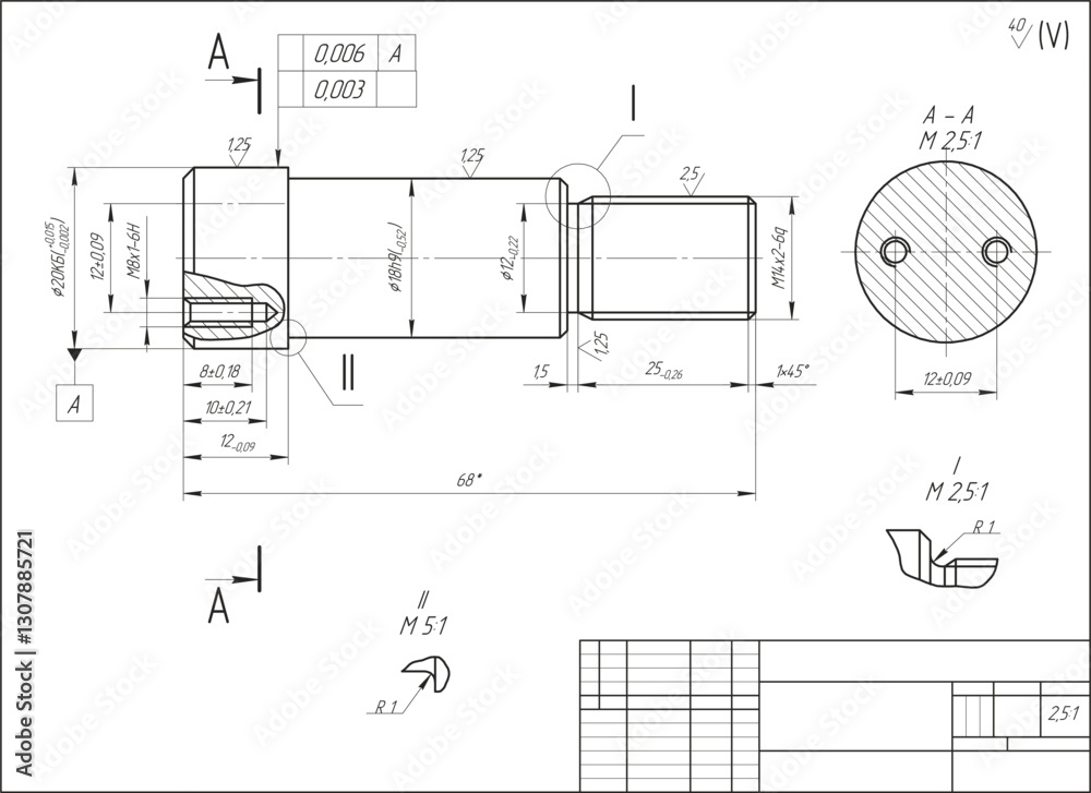 Assembly drawing of shaft of electrical reducer - vector design of steel mechanical device with dimenWall mural