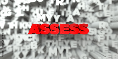 Wall mural : Assess - red text on typography background - 3d rendered royalty free stock image - this image can be
