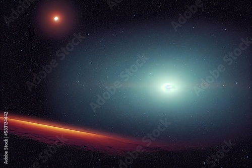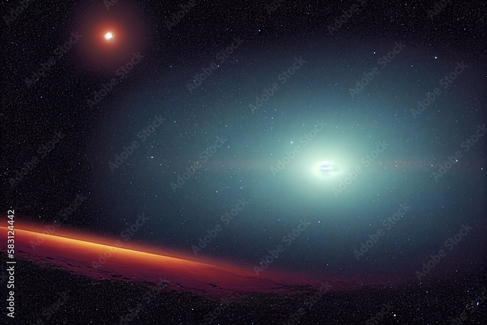 Asteroid and planet surface view from orbit in cosmos background digital illustration - , created withWall mural
