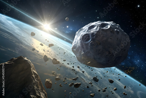The watermark will not be included on Wall mural.: Asteroid floating in space with bright light