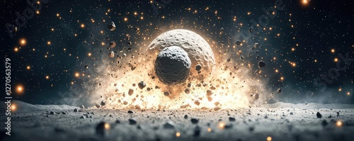 Wall mural asteroid impact idea. a celestial collision depicted in a dramatic and visually stunning representat