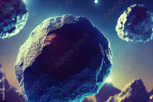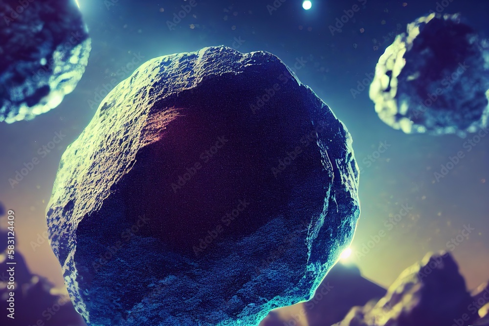 The watermark will not be included on Wall mural.: Asteroid rocks floating in open space background digital illustration - , created with generative ai
