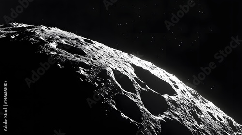 Wall mural asteroid with craters: a close-up of a large asteroid covered in deep craters, drifting silently thr - Wall murals Wall mural asteroid with craters: a close-up of a large asteroid covered in deep craters, drifting silently thr - Wall murals