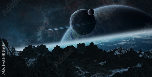 Wall mural : Asteroids flying close to planets 3d rendering elements of this image furnished by nasa