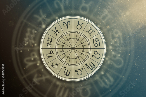 Wall mural astrological circle with the signs of the zodiac on a background of the starry sky. illustration for
