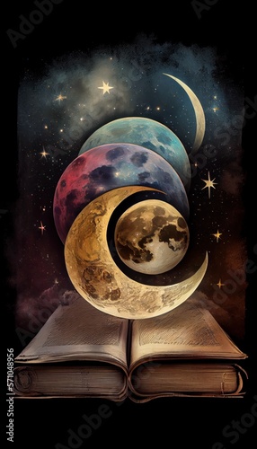 Wall mural astrology or astronomy book of the universe - opened old witch magic book with moon phases. - Wall murals Wall mural astrology or astronomy book of the universe - opened old witch magic book with moon phases. - Wall murals