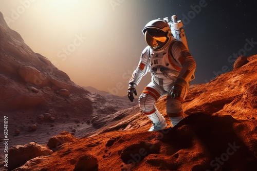 The watermark will not be included on Wall mural.: Astronau exploring the surface of planet mars