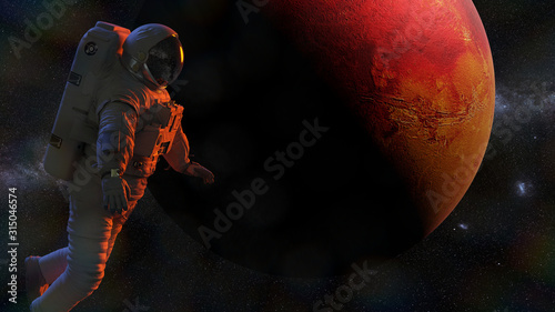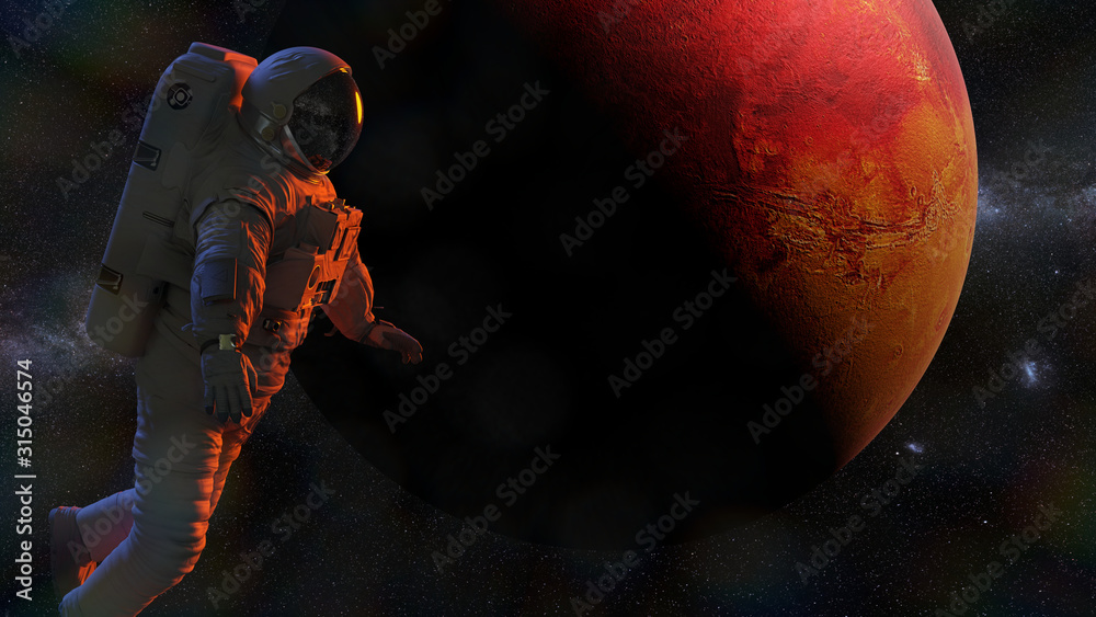 The watermark will not be included on Wall mural.: Astronaut during a space walk in orbit of planet mars