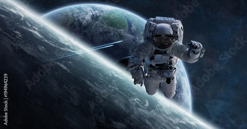 Wall mural astronaut floating in space 3d rendering elements of this image furnished by nasa - Wall murals Wall mural astronaut floating in space 3d rendering elements of this image furnished by nasa - Wall murals