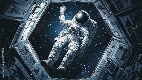 The watermark will not be included on Wall mural.: Astronaut floating in space outside spaceship
