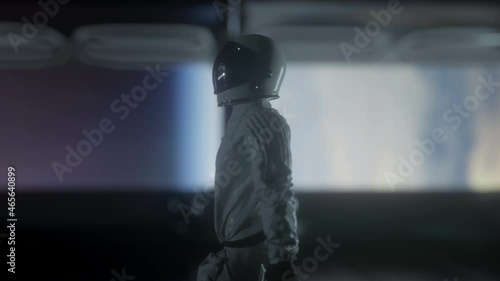 The watermark will not be included on Wall mural.: Astronaut going through the tunnel to another compartment of futuristic spaceship