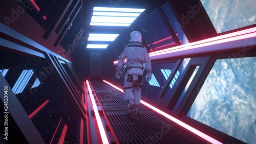 The watermark will not be included on Wall mural.: Astronaut going through the tunnel to another compartment of the space gateway