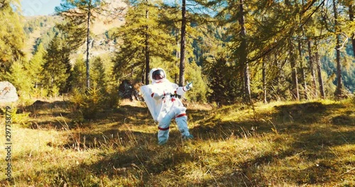 Wall mural : Astronaut has find a new planet similar to earth with nature and forests