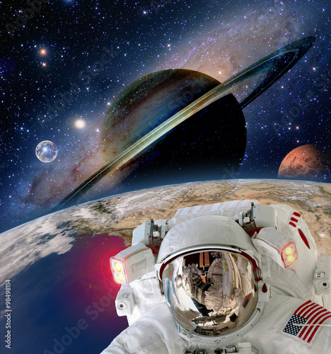 Wall mural astronaut helmet spaceman solar system saturn mars planet moon sci fi space. elements of this image