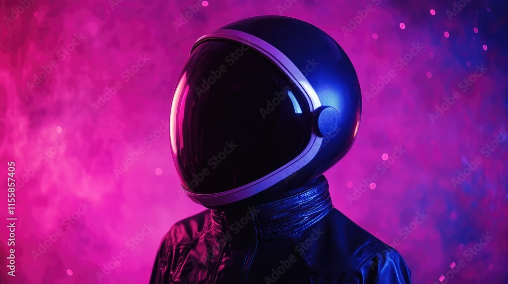 The watermark will not be included on Wall mural.: Astronaut in a reflective helmet surrounded by a vibrant galaxy backdrop with ample space for text a