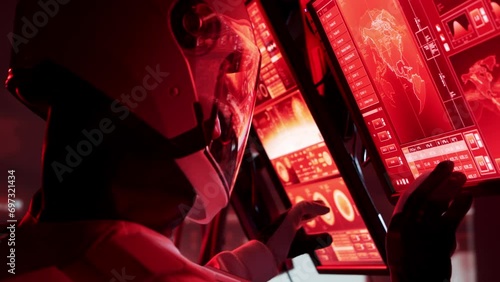 The watermark will not be included on Wall mural.: Astronaut in a space suits aboard the mars station - cosmonauts piloting the spaceship in space - gala