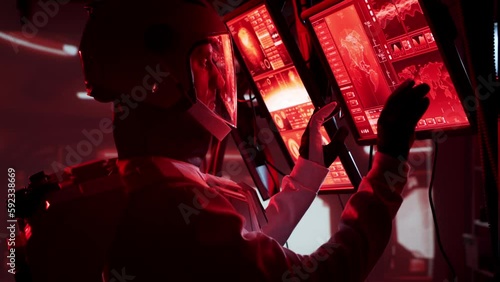 The watermark will not be included on Wall mural.: Astronaut in a space suits aboard the mars station - cosmonauts piloting the spaceship in space - gala