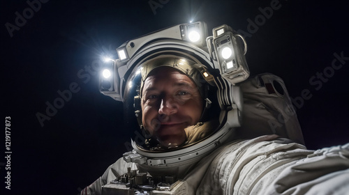 The watermark will not be included on Wall mural.: Astronaut in a spacesuit taking a selfie