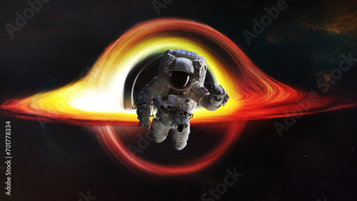 Astronaut in deep space close to the black hole and event horizon - elements of this image furnished Wall mural