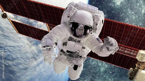 Wall mural astronaut in outer space against the backdrop of the planet earth. elements of this image furnished  - Wall murals Wall mural astronaut in outer space against the backdrop of the planet earth. elements of this image furnished - Wall murals