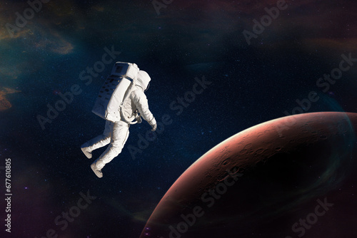 Astronaut in outer space close to mars planet - elements of this image furnished by nasa - Wall mural