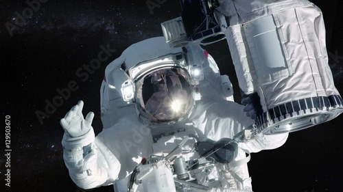 The watermark will not be included on Wall mural.: Astronaut in outer space over stars background -