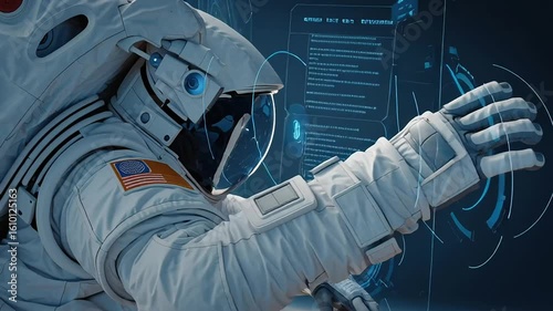 The watermark will not be included on Wall mural.: Astronaut in space interacting with futuristic digital interface with ai generated