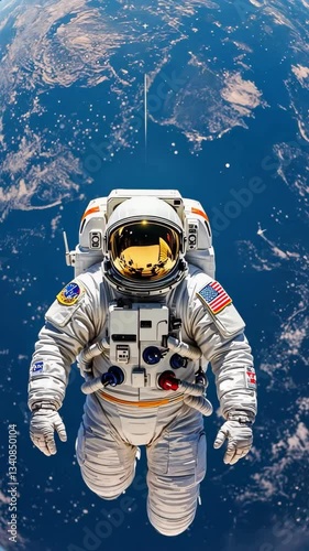 The watermark will not be included on Wall mural.: Astronaut in spacesuit floats in outer space with earth in background - concept of space exploration,