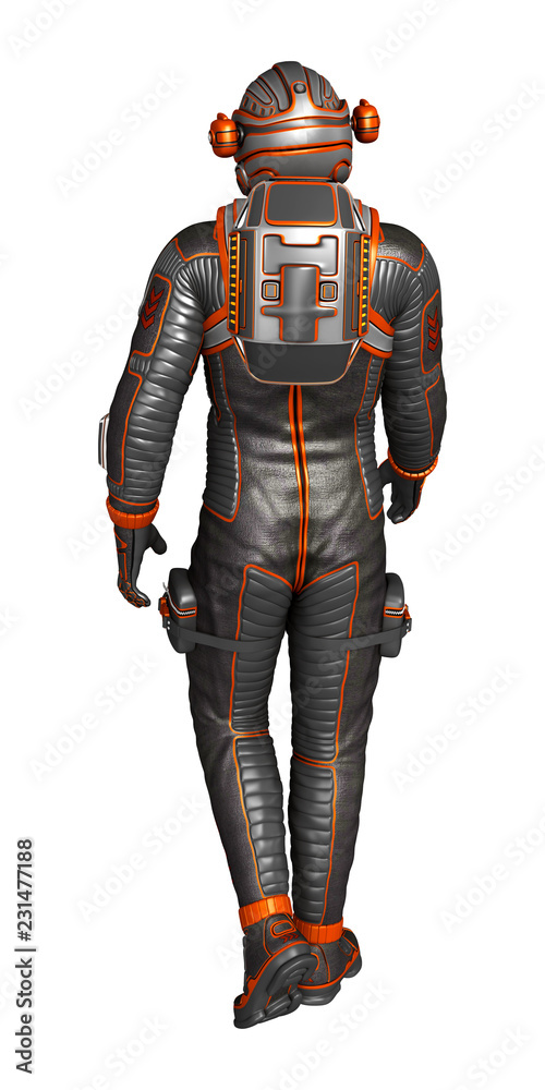 Wall mural : Astronaut in spacesuit from back, isolated on white - 3d rendering -