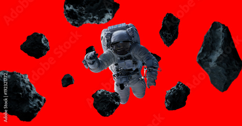 Wall mural astronaut isolated on red background 3d rendering elements of this image furnished by nasa
