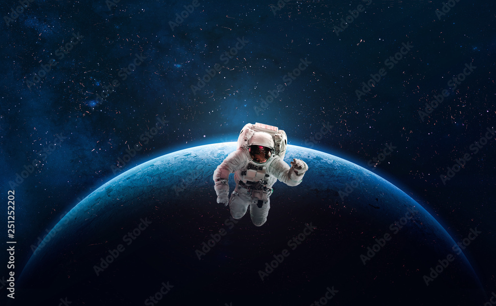 Wall mural : Astronaut on orbit of earth planet in the outer space - abstract wallpaper - spaceman - elements of thi