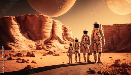 Wall mural astronaut on the dry surface of mars made with generative ai