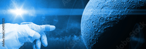 Wall mural : Astronaut pointing to the moon (blue 3d illustration, background banner, elements of this image are