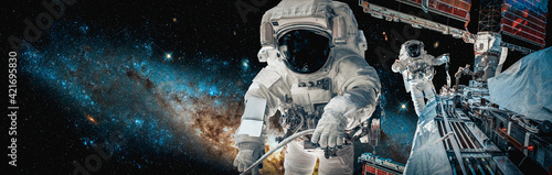 Wall mural astronaut spaceman do spacewalk while working for space station in outer space . astronaut wear full - Wall murals Wall mural astronaut spaceman do spacewalk while working for space station in outer space . astronaut wear full - Wall murals