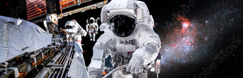 Wall mural astronaut spaceman do spacewalk while working for space station in outer space . astronaut wear full - Wall murals Wall mural astronaut spaceman do spacewalk while working for space station in outer space . astronaut wear full - Wall murals