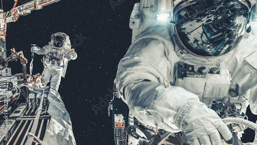 Wall mural astronaut spaceman do spacewalk while working for spaceflight mission at space station . astronaut w - Wall murals Wall mural astronaut spaceman do spacewalk while working for spaceflight mission at space station . astronaut w - Wall murals