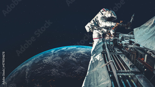 Wall mural astronaut spaceman do spacewalk while working for spaceflight mission at space station . astronaut w - Wall murals Wall mural astronaut spaceman do spacewalk while working for spaceflight mission at space station . astronaut w - Wall murals