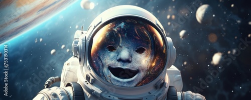 Wall mural : Astronaut walking in space exploring universe planets and space life, banner - generative ai -