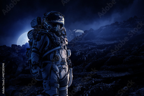 The watermark will not be included on Wall mural.: Astronaut walking on an unexplored planet