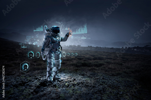 The watermark will not be included on Wall mural.: Astronaut walking on an unexplored planet