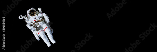 Astronaut with a jetpack isolated on black panoramic background with copy space - elements of this iWall mural