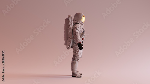 Wall mural : Astronaut with gold visor and white helmet spacesuit with warm background with neutral diffused side