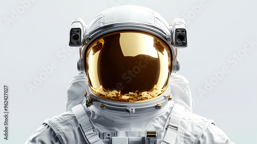 The watermark will not be included on Wall mural.: Astronaut with gold visor and white spacesuit with light grey background with neutral diffused side