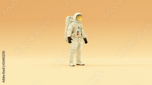 Wall mural : Astronaut with gold visor and white spacesuit with warm cream background with warm diffused lighting