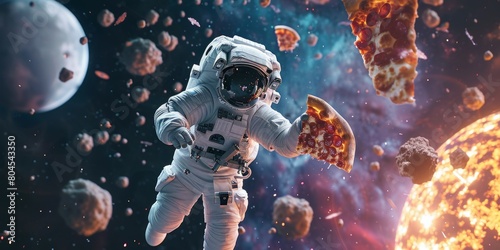 The watermark will not be included on Wall mural.: Astronaut with pizza on the background of the outer space -