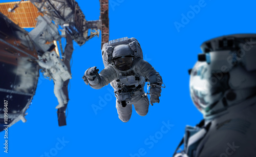 Astronaut working on a space station 3d rendering elements of this image furnished by nasaWall mural