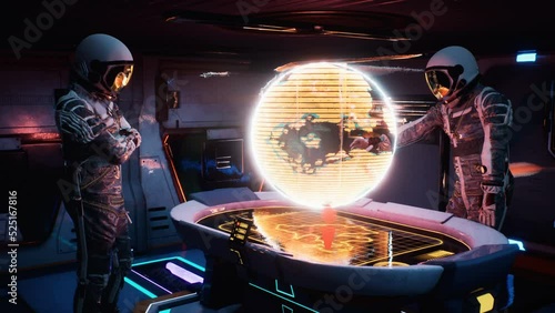 Wall mural : Astronauts choose a flight route in the control room of the spacecraft - the concept of the astronaut